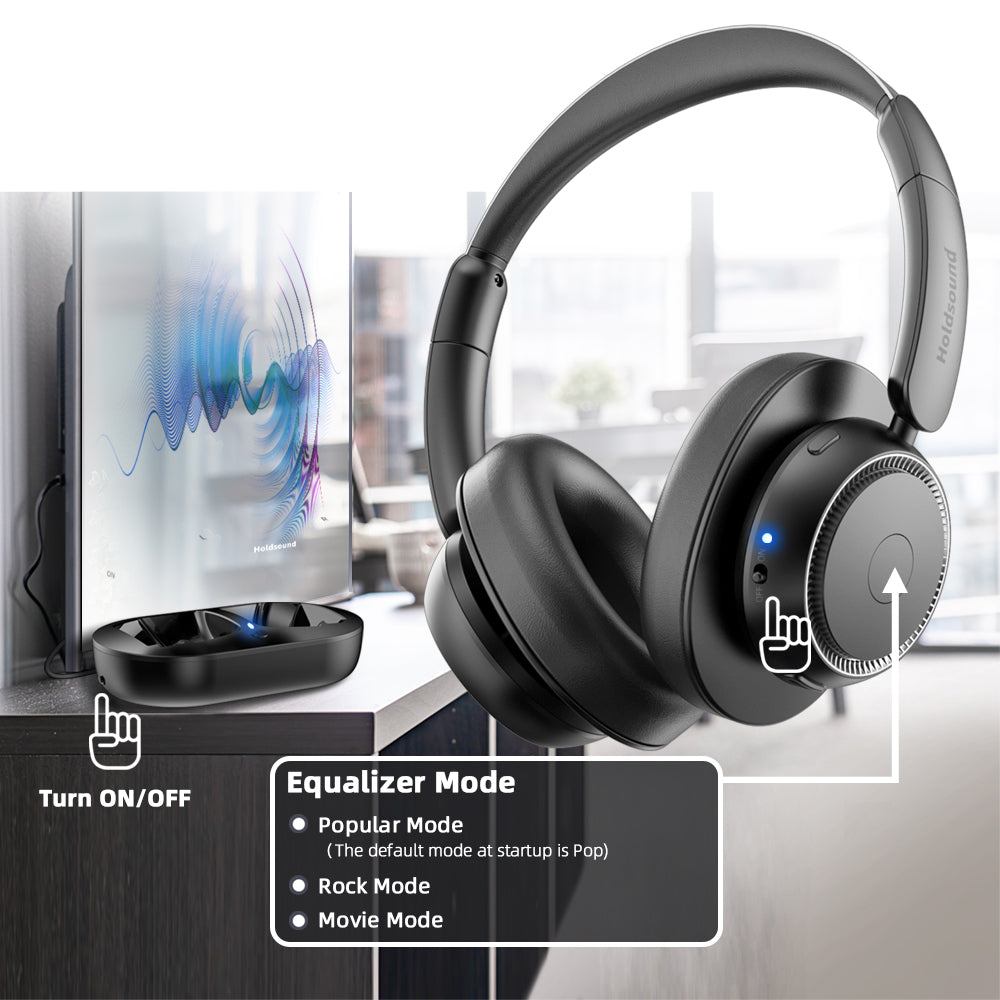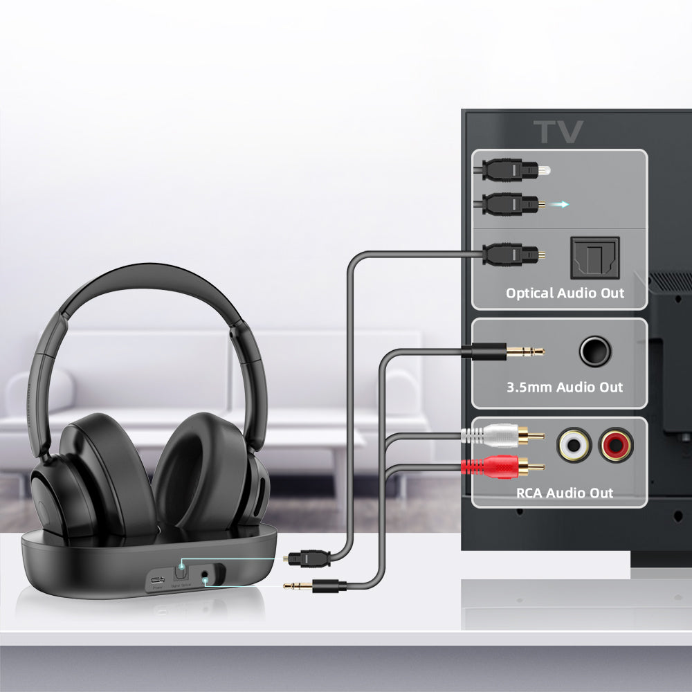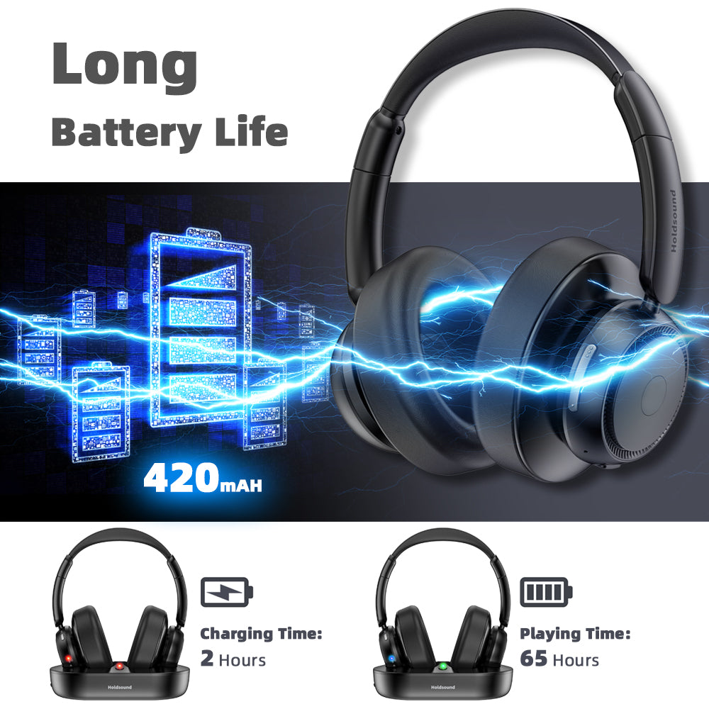 With a battery life of 65 hrs on a single charge, yyou can watch your favorite series or sports shows for a week without having to charge your headphones! When you're not using them, just place it on the TV transmitter to quickly replenish energy, which charges them while solving the problem of storing them. No cables, no hassle.